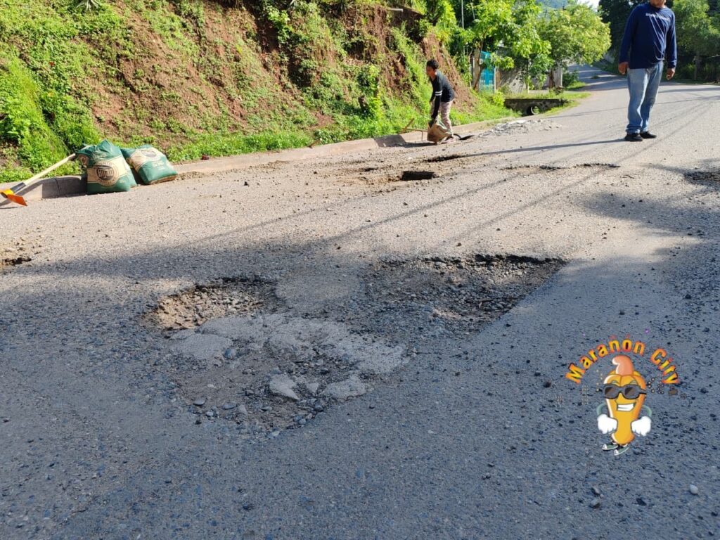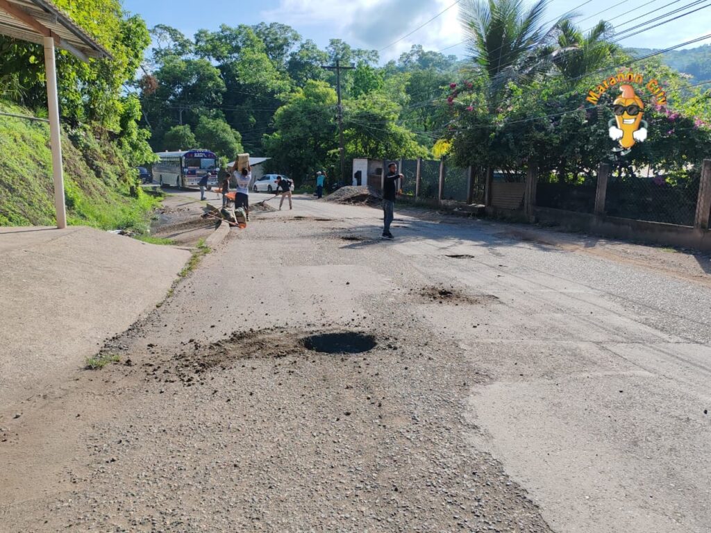 Desde temprano en la mañana, un grupo de voluntarios se encuentra trabajando en la reparación de los baches en la bajadita, una zona bien conocida por todos y donde muchos conductores suelen bajar a alta velocidad.